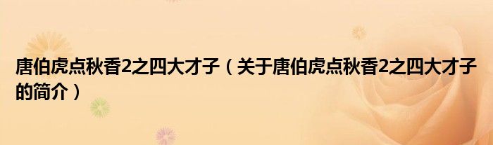 本文關(guān)于唐伯虎點(diǎn)秋香2之四大才子的簡(jiǎn)介就講解完畢,希望對(duì)大家有所幫助。