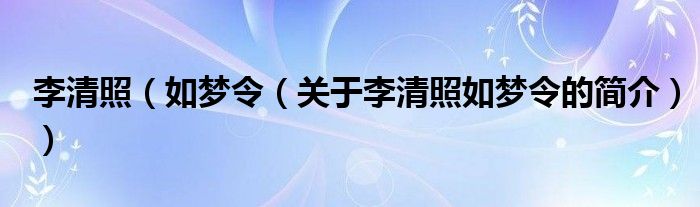 本文關于李清照 如夢令的簡介就講解完畢,希望對大家有所幫助。