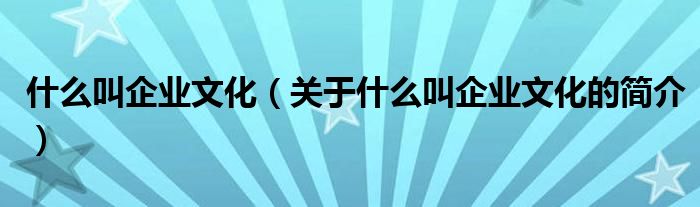 本文關于什么叫企業文化的簡介就講解完畢,希望對大家有所幫助。