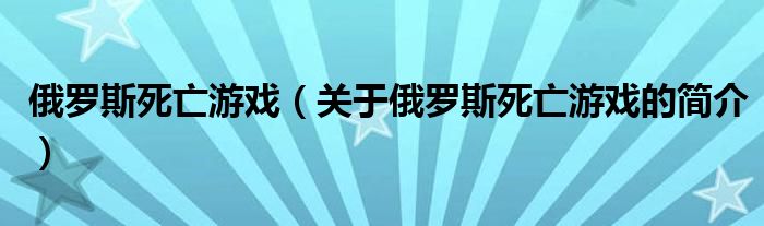 大家好,俄羅斯死亡游戲,關于俄羅斯死亡游戲的簡介很多人還不知道,現在讓我們一起來看看吧!
