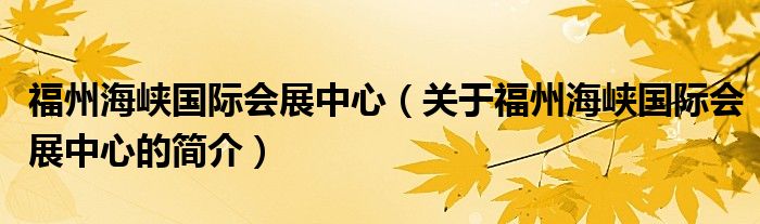 本文關于福州海峽國際會展中心的簡介就講解完畢,希望對大家有所幫助。