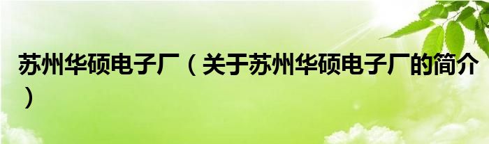 本文關于蘇州華碩電子廠的簡介就講解完畢,希望對大家有所幫助。