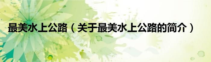 本文關于最美水上公路的簡介就講解完畢,希望對大家有所幫助。