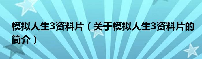 本文關于模擬人生3資料片的簡介就講解完畢,希望對大家有所幫助。