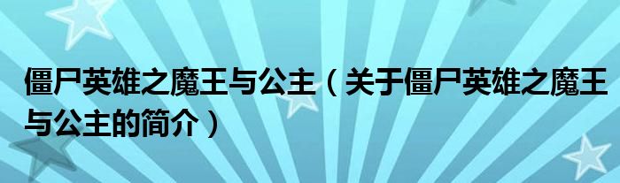 本文關于僵尸英雄之魔王與公主的簡介就講解完畢,希望對大家有所幫助。