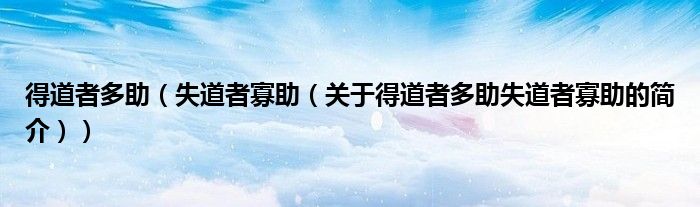 本文關(guān)于得道者多助 失道者寡助的簡介就講解完畢,希望對大家有所幫助。