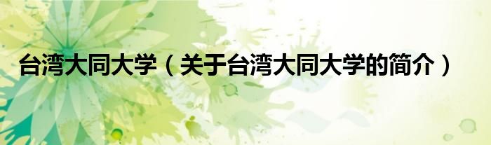 1、大同大學(xué)(英文:Tatung University,簡(jiǎn)稱:TTU)位于中國(guó)臺(tái)灣省臺(tái)北市中山區(qū)中山北路三段,毗鄰大同公司和臺(tái)北市美術(shù)館、2010年臺(tái)北國(guó)際花卉博覽會(huì)會(huì)址。