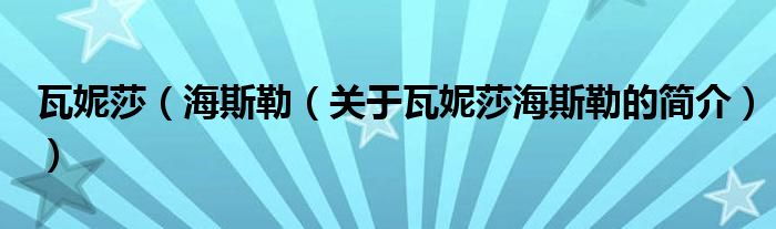 大家好,瓦妮莎 海斯勒,關于瓦妮莎 海斯勒的簡介很多人還不知道,現在讓我們一起來看看吧!