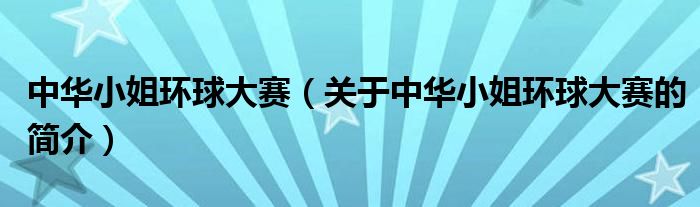本文關于中華小姐環球大賽的簡介就講解完畢,希望對大家有所幫助。