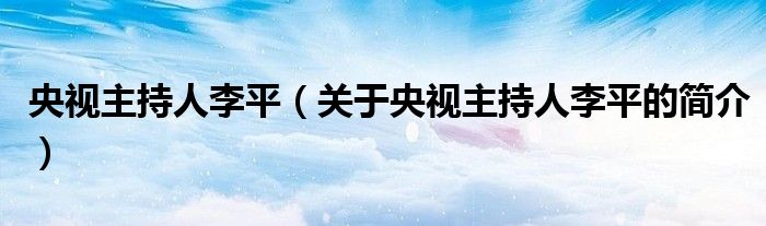 本文關于央視主持人李平的簡介就講解完畢,希望對大家有所幫助。