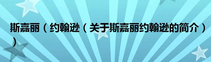 大家好,斯嘉麗 約翰遜,關于斯嘉麗 約翰遜的簡介很多人還不知道,現在讓我們一起來看看吧!