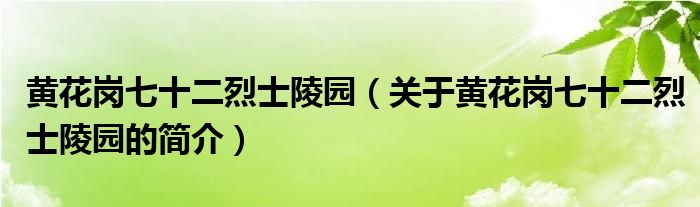 本文關于黃花崗七十二烈士陵園的簡介就講解完畢,希望對大家有所幫助。