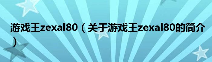 本文關于游戲王zexal80的簡介就講解完畢,希望對大家有所幫助。