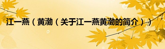 本文關于江一燕 黃渤的簡介就講解完畢,希望對大家有所幫助。