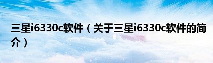 本文關于三星i6330c軟件的簡介就講解完畢,希望對大家有所幫助。