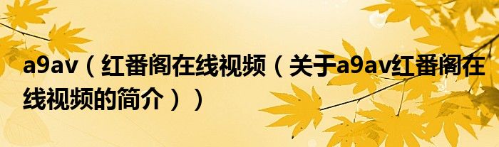 本文關于a9av 紅番閣在線視頻的簡介就講解完畢,希望對大家有所幫助。