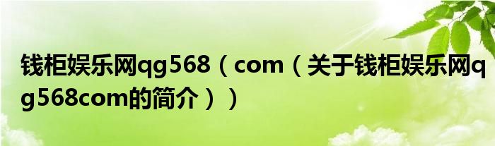 本文關于錢柜娛樂網qg568 com的簡介就講解完畢,希望對大家有所幫助。