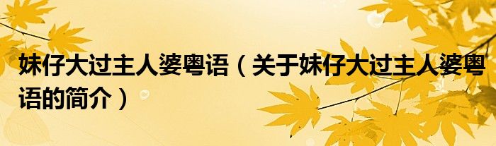 本文關于妹仔大過主人婆粵語的簡介就講解完畢,希望對大家有所幫助。
