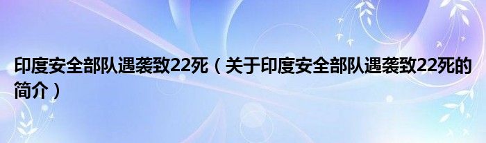 本文關(guān)于印度安全部隊(duì)遇襲致22死的簡介就講解完畢,希望對大家有所幫助。