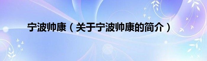 大家好,寧波帥康,關于寧波帥康的簡介很多人還不知道,現在讓我們一起來看看吧!