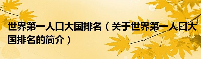本文關于世界第一人口大國排名的簡介就講解完畢,希望對大家有所幫助。