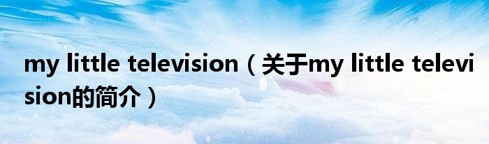 本文關于my little television的簡介就講解完畢,希望對大家有所幫助。