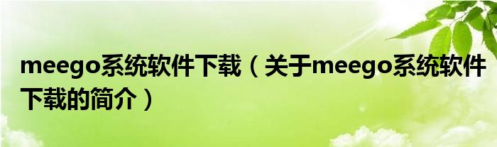 大家好,meego系統(tǒng)軟件下載,關于meego系統(tǒng)軟件下載的簡介很多人還不知道,現(xiàn)在讓我們一起來看看吧!