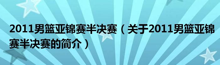 本文關(guān)于2011男籃亞錦賽半決賽的簡介就講解完畢,希望對大家有所幫助。