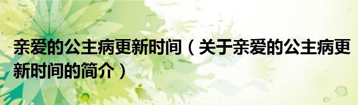 本文關(guān)于親愛的公主病更新時間的簡介就講解完畢,希望對大家有所幫助。