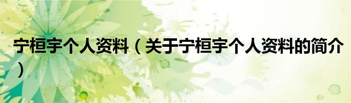 本文關于寧桓宇個人資料的簡介就講解完畢,希望對大家有所幫助。