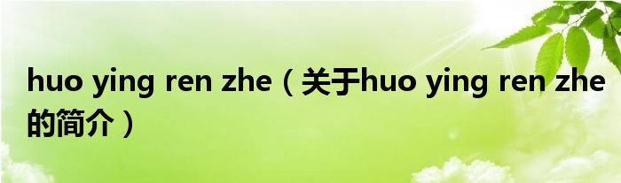 本文關于huo ying ren zhe的簡介就講解完畢,希望對大家有所幫助。