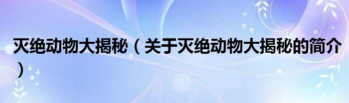 本文關于滅絕動物大揭秘的簡介就講解完畢,希望對大家有所幫助。