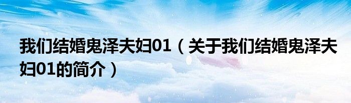 大家好,我們結婚鬼澤夫婦01,關于我們結婚鬼澤夫婦01的簡介很多人還不知道,現在讓我們一起來看看吧!
