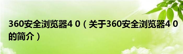 大家好,360安全瀏覽器4 0,關(guān)于360安全瀏覽器4 0的簡(jiǎn)介很多人還不知道,現(xiàn)在讓我們一起來(lái)看看吧!