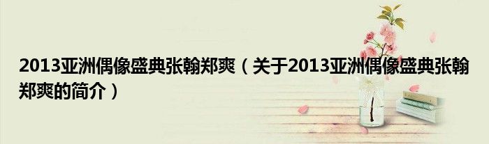 本文關(guān)于2013亞洲偶像盛典張翰鄭爽的簡(jiǎn)介就講解完畢,希望對(duì)大家有所幫助。