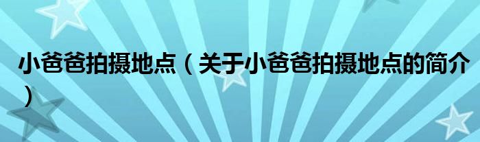 本文關于小爸爸拍攝地點的簡介就講解完畢,希望對大家有所幫助。