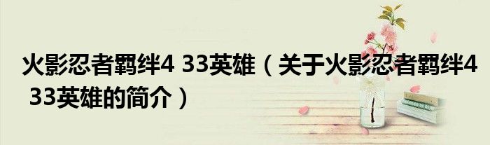 本文關(guān)于火影忍者羈絆4 33英雄的簡(jiǎn)介就講解完畢,希望對(duì)大家有所幫助。