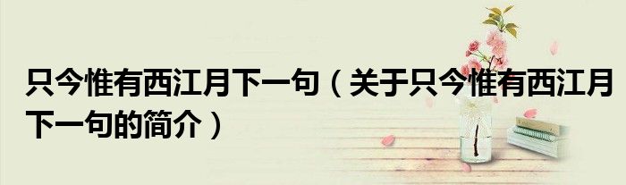 本文關(guān)于只今惟有西江月下一句的簡(jiǎn)介就講解完畢,希望對(duì)大家有所幫助。