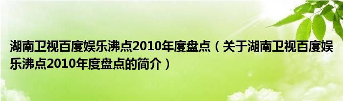 大家好,湖南衛視百度娛樂沸點2010年度盤點,關于湖南衛視百度娛樂沸點2010年度盤點的簡介很多人還不知道,現在讓我們一起來看看吧!