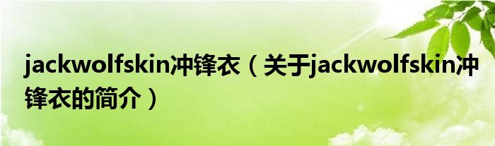 本文關于jackwolfskin沖鋒衣的簡介就講解完畢,希望對大家有所幫助。