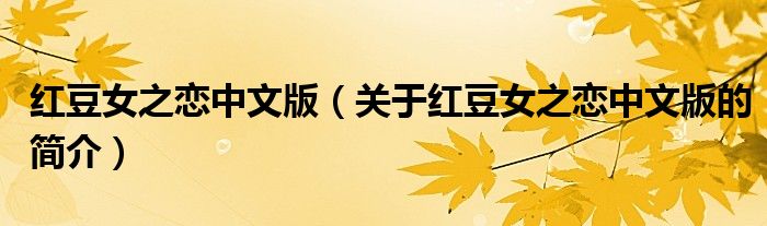 本文關于紅豆女之戀中文版的簡介就講解完畢,希望對大家有所幫助。