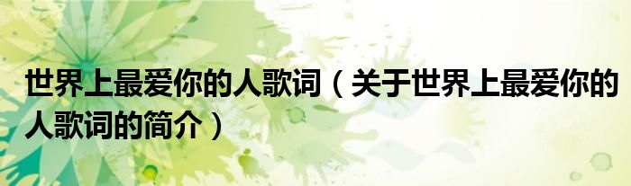 本文關于世界上最愛你的人歌詞的簡介就講解完畢,希望對大家有所幫助。