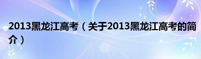 本文關(guān)于2013黑龍江高考的簡介就講解完畢,希望對大家有所幫助。