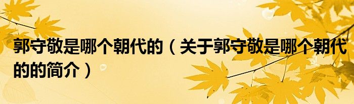 本文關于郭守敬是哪個朝代的的簡介就講解完畢,希望對大家有所幫助。