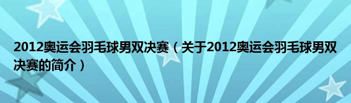 本文關于2012奧運會羽毛球男雙決賽的簡介就講解完畢,希望對大家有所幫助。