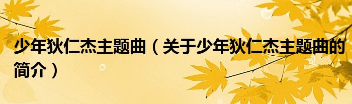 本文關于少年狄仁杰主題曲的簡介就講解完畢,希望對大家有所幫助。