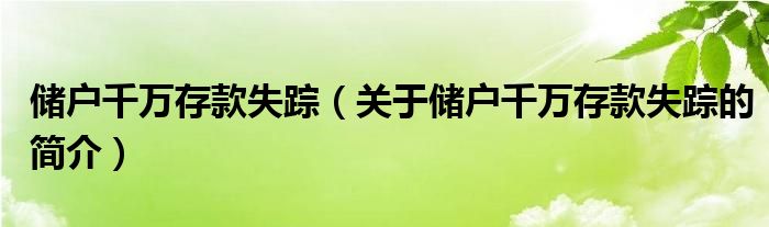 本文關于儲戶千萬存款失蹤的簡介就講解完畢,希望對大家有所幫助。