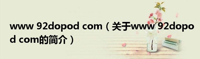大家好,www 92dopod com,關于www 92dopod com的簡介很多人還不知道,現在讓我們一起來看看吧!