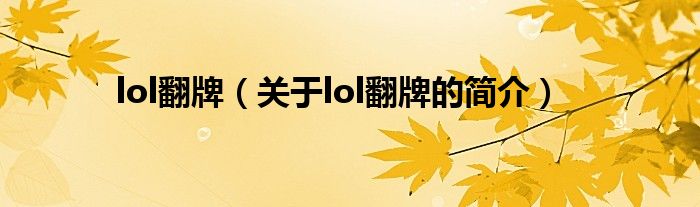 本文關于lol翻牌的簡介就講解完畢,希望對大家有所幫助。