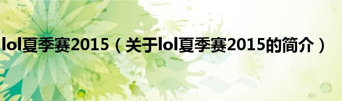 大家好,lol夏季賽2015,關于lol夏季賽2015的簡介很多人還不知道,現在讓我們一起來看看吧!